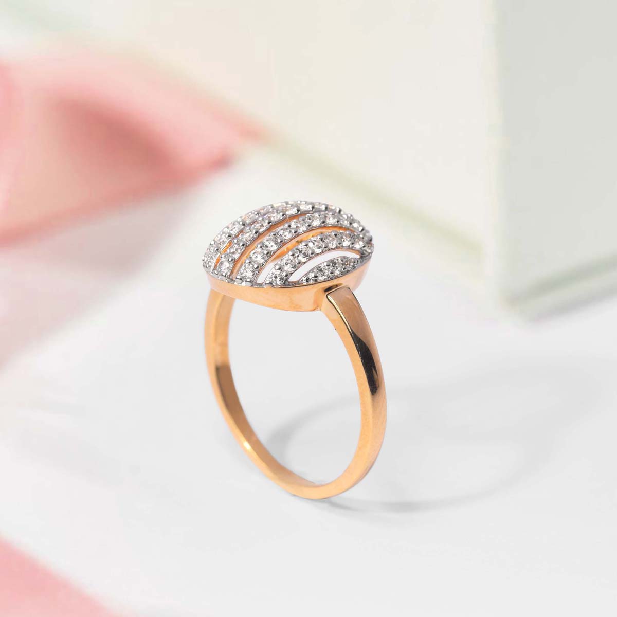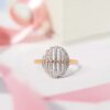 The Anvi Ring is crafted in luminous 18K gold and set with lab grown diamonds that create a refined, structured sparkle. Its oval form and carefully arranged diamond rows bring depth and balance to the design, offering a modern yet timeless appeal.