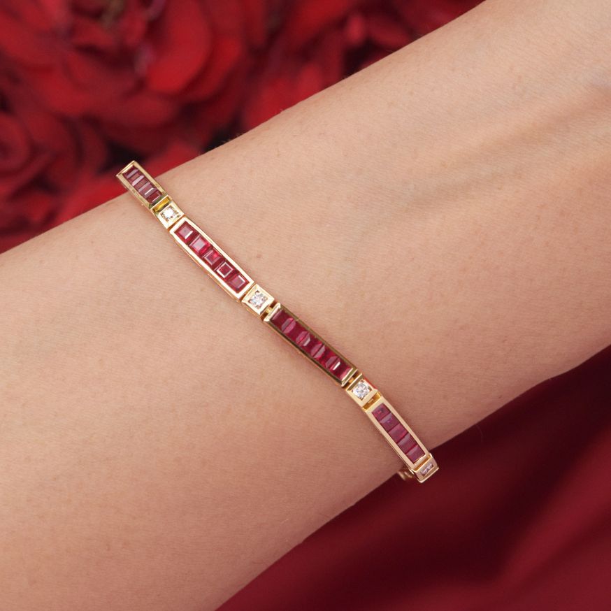 A gorgeous vintage piece of fine jewelry with a classical ruby diamond combination.