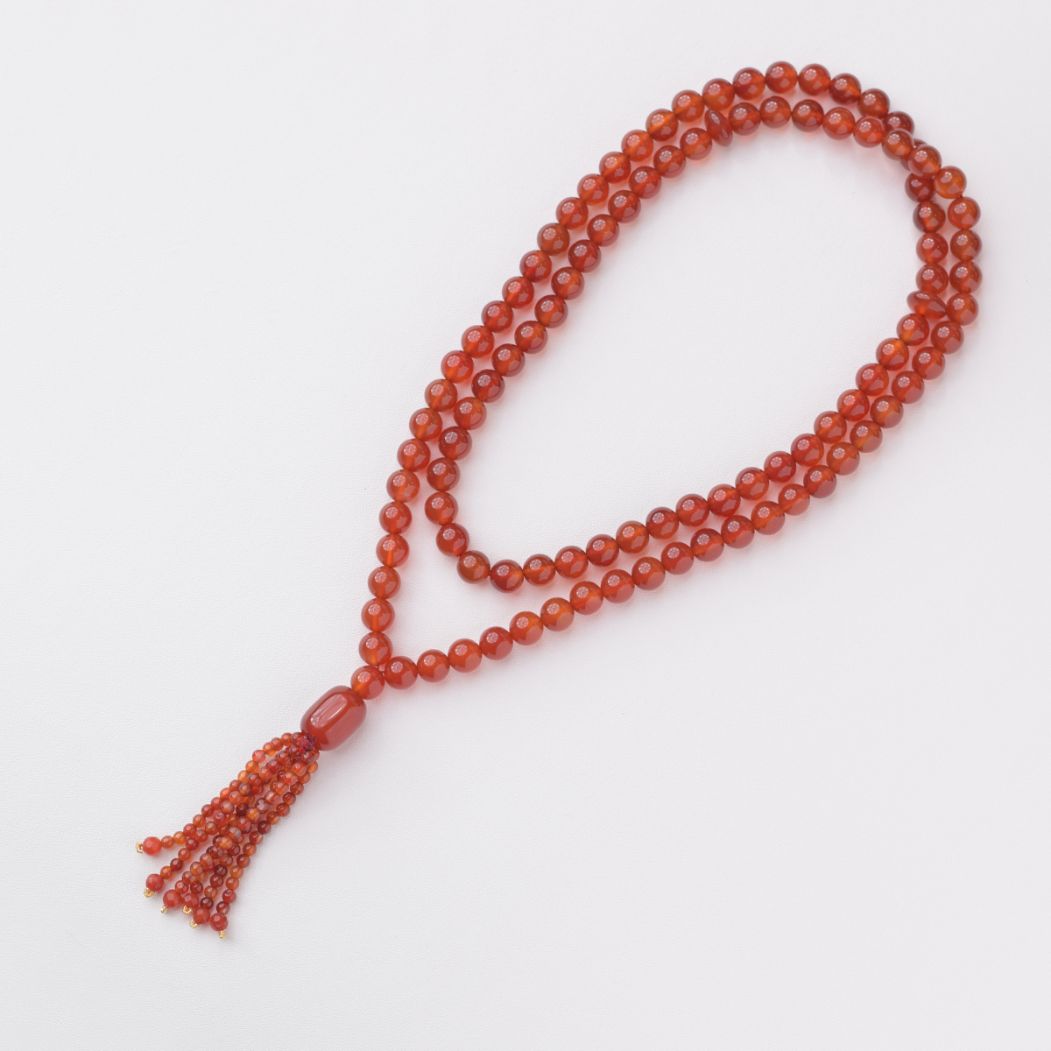 Hafiz is a beautiful brick red tasbih with faceted Aqeeq gemstones. Bring home peace and tranquillity with this divine Tasbih with round Aqeeq beads attached to the tassel as well.