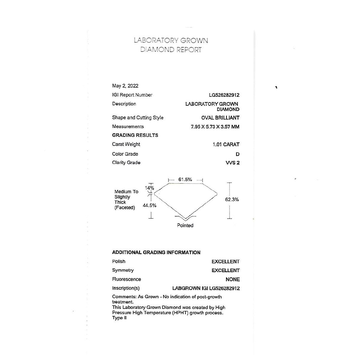 • Stone: Oval Big Solitaire 1pcs, 1.01 cts VVS 2 / D