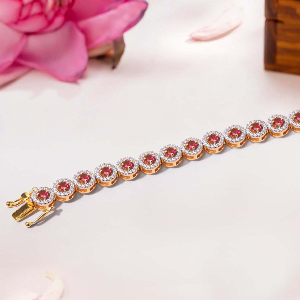 The Lana Bracelet showcases brilliant rubies encircled by sparkling diamonds in a sleek tennis design. Crafted for elegance and comfort, it’s perfect for both everyday wear and special occasions.
