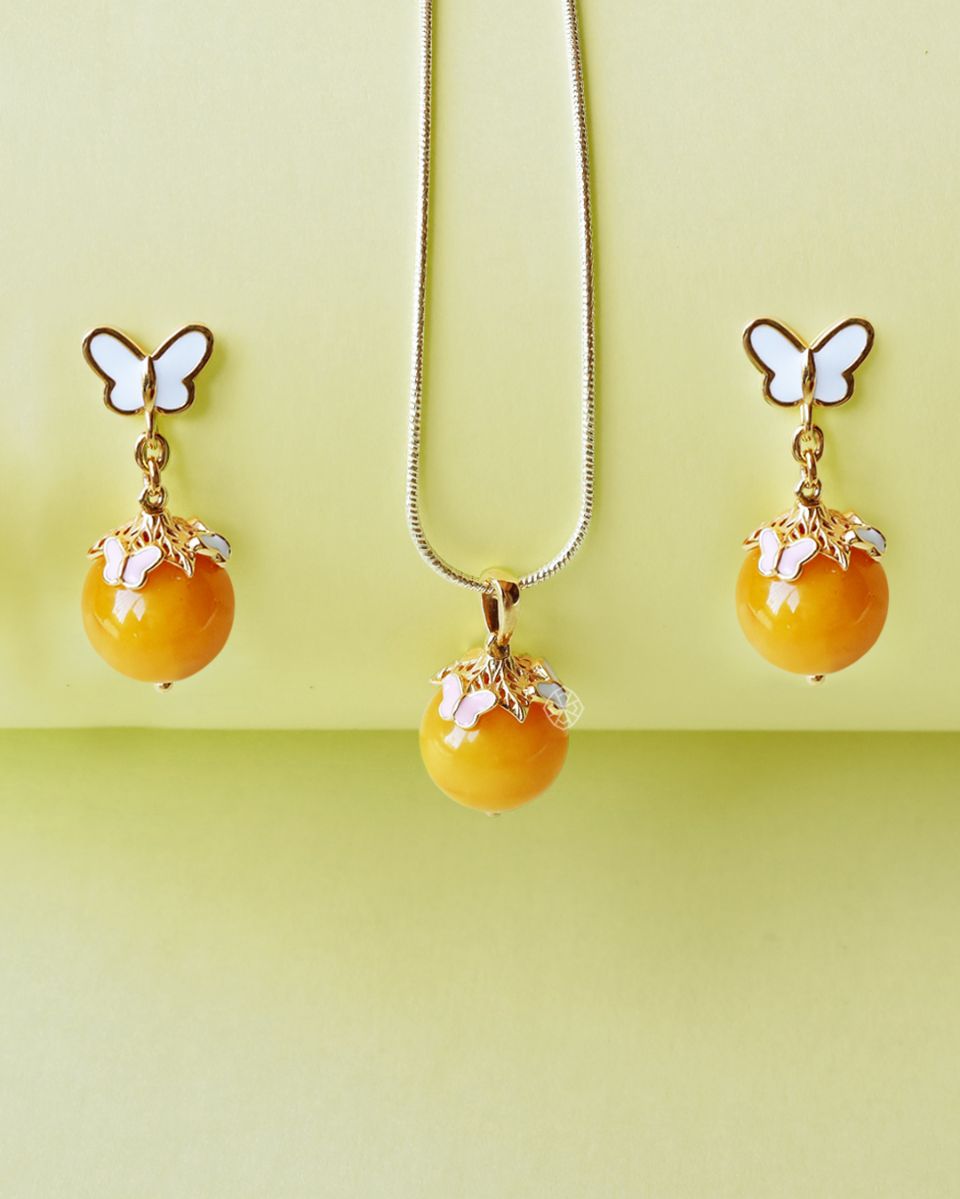 Nia is a dainty Amber set featuring delicate butterfly designed earrings and a pendant. Add flair to your everyday look with this gorgeous set