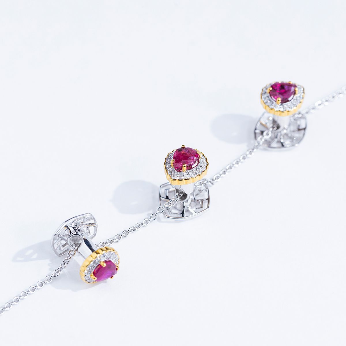 Noble 3.0 kurta buttons are designed to add a touch of elegance and sophistication to any outfit. Our buttons are crafted with a combination of Pear shape Natural Burma Rubies and Lab grown diamonds set in 18K yellow gold on top and silver on the bottom.The use of Natural Burma Rubies and Lab grown diamonds ensures that the buttons are of the highest quality and will last for generations to come.