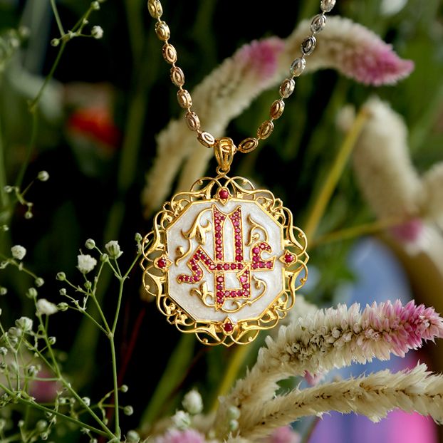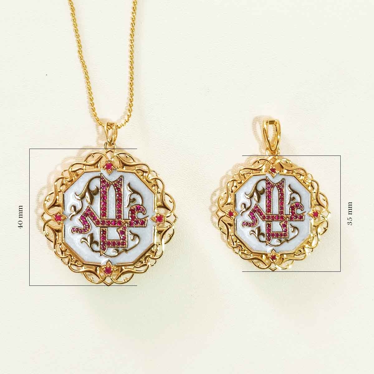 The Roohaniyat Taweez is an extraordinary piece filled with spiritual and divine powers from our signature collection. The attention to detail and intricacy of the design are what make this an exemplary piece that can be adorned for years. Ya Ali is studded with 57 pigeon blood colour Burma Rubies.