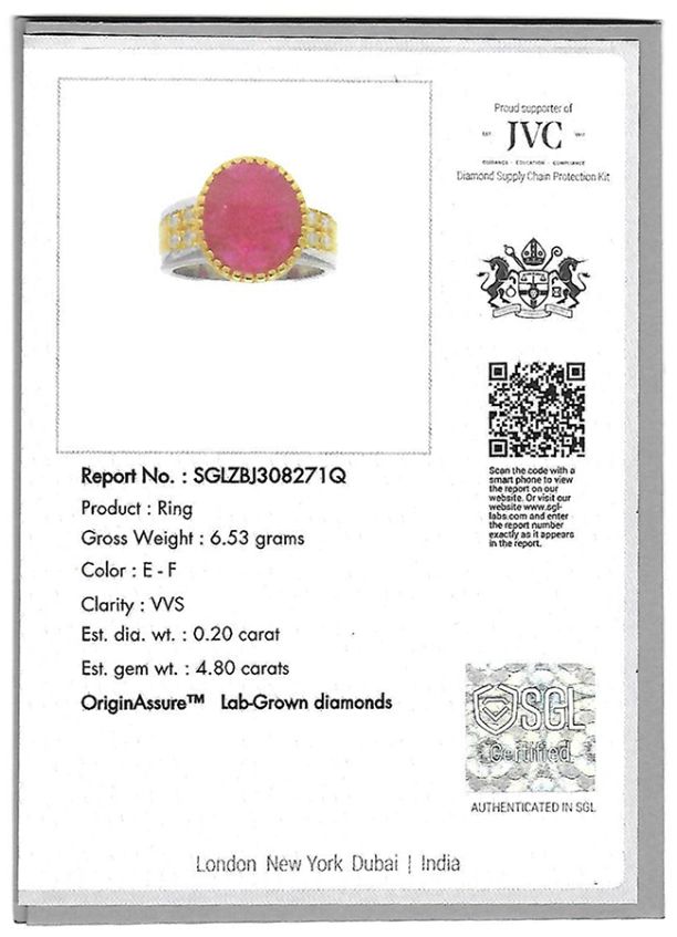 - Stone: Natural Mozambique Ruby (H) 1 pcs , 4.80 cts