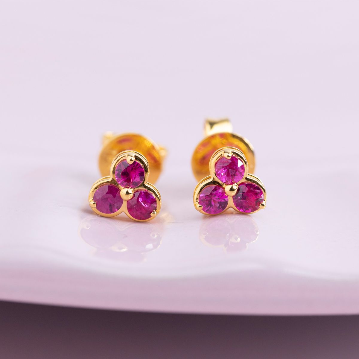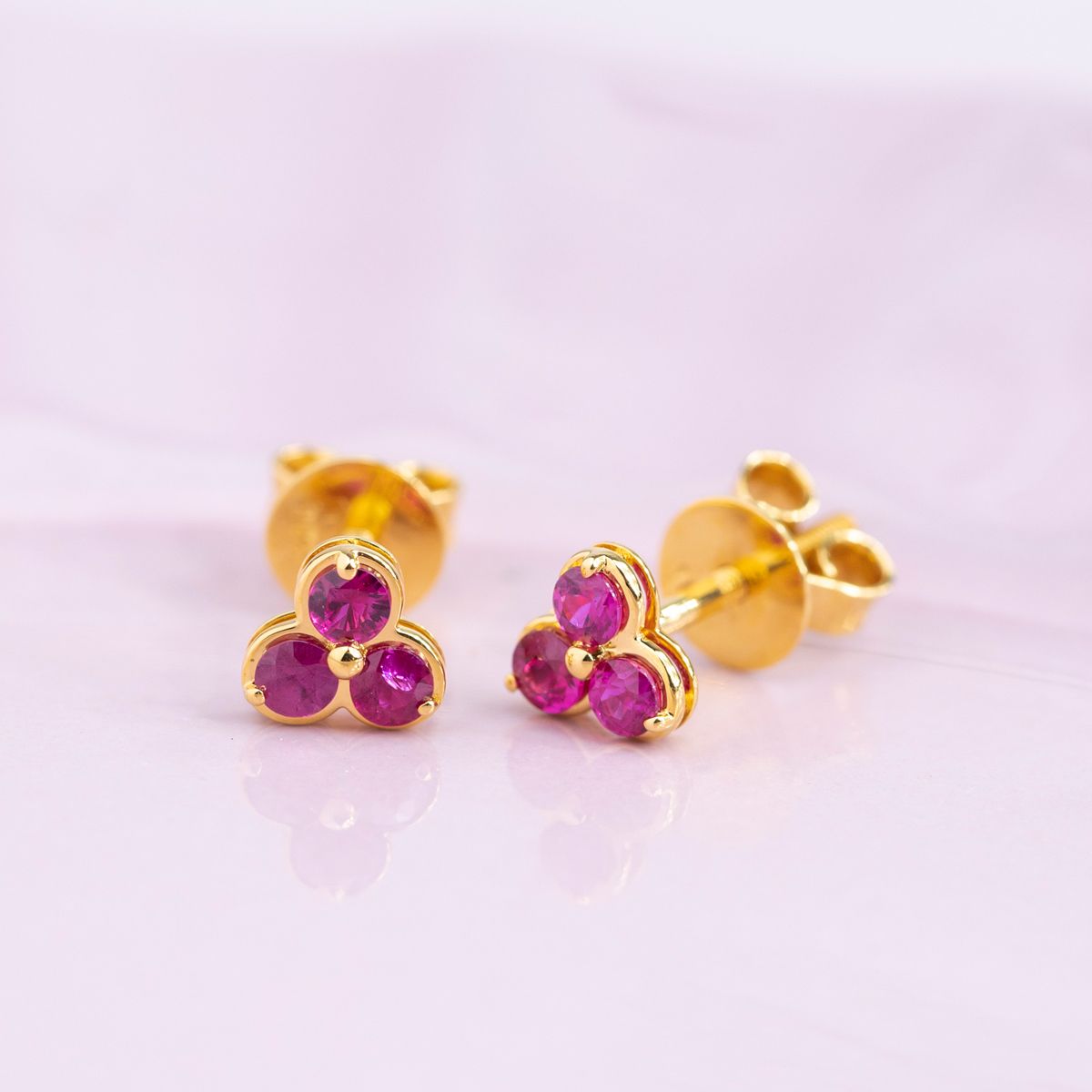 Made with 6 round Natural Burma Rubies in a vivid red color, set in 18k yellow gold, these earrings are guaranteed to catch everyone’s eye. These elegant and dainty earrings are perfectly sized for your adorable little girl’s ears and are sure to complement any summer outfit.