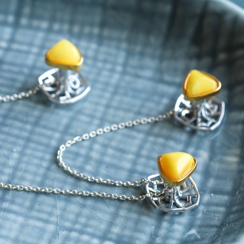 • Please note that Amber is a unique material. Each design is handcrafted by our skilled craftsmen. The buttons are specially designed with a Faya logo base and are connected with an 8-inch silver chain. There may be variations in the jewelry compared to the pictures.